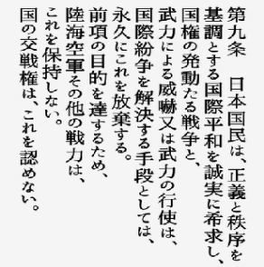 日本には、依然として… 〔● 日本国憲法・・・憲法9条/戦争放棄条項を持つ・・・ 平和憲法〕 が、存在していま す。 かつて… 米軍の占領下で起草された 〔新憲法/・・・平和憲法〕 でしたが、日本国民はこれを、< 国家の礎(いしずえ)として・・・戦後80年間、深く愛し続け・・・> 、今/現在も、この 〔日本 国憲法は・・・健在!! 〕 です。これに代わる、憲法は、存在しません。