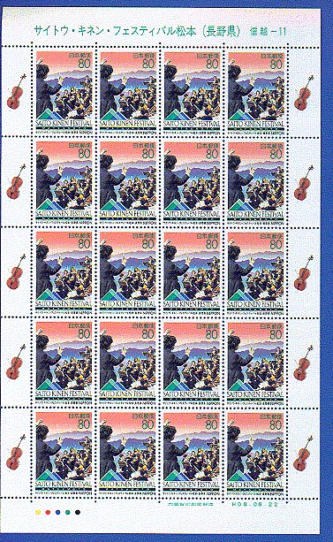 日本には各地域都市が抱える公営のオーケストラを含めてかなりの団体数があるが、私的な 主催によるサイトウキネンオーケストラが切手に採用されたことにはやはり抵抗が感じられ る。東京にはNHK交響楽団、東京都交響楽団、東京交響楽団、東京フィルハーモニー、 新日本フィルハーモニー、日本フィルハーモニー、新星日本交響楽団、読売日本交響楽団、 名古屋には名古屋フィルハーモニー、大阪には大阪フィルハーモニー、大阪センチュリー 交響楽団、関西フィル等サイトウよりも歴史を誇るオーケストラがあり、山田耕筰に始まる 日本の西洋音楽史を飾る指揮者、作曲家が携わって来た所も多いが、それらは一度として 切手に取り入れられることはなかったのである。