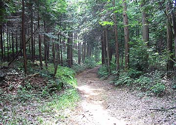 | 実はここの加治丘陵は私の住む川越市からもそう遠くなく、このページを作成するにあたり、4回も訪れているのですが、いつ来ても、林業を行っている人に一人か二人位しか会いません。鎌倉街道の伝わる山道でよくお目に掛かるMTBの人も一度も出会っていません。 | ![]() |