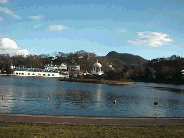 水面が凍っていた。軽井沢はまだまだ寒い。