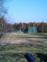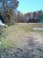 少し急な打ち上げのホールです。右は直ぐに練習場のネットです、ネット際は草が生い茂っていてここに入るとボールを見つけるのに大変です。左側は広いですがグリーン手前に落とすとグリーンまでは急な打ち上げになります。グリーンの奥は平らですが、グリーンが狭いのでここからの戻しが強いとグリーンの下へかなり落ちてしまいます。