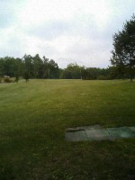 ほぼフラットなホールで、グリーンはかなり受けています。ティーグランドから見ると、右側に小山、左側は林です。私は
