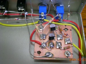 「本」の製作事例では電源コントロール部は受信部と送信部の基板に分かれていますが、わかりやすくするため纏めました。実際にキーを入れて切り替わるかテストしてみると、うまく切り替わり送信、受信のインジケータの発光ダイオードが交互に光り、完成です。 次に「受信部」を作ります。VXO部より回路が単純なので比較的楽です。後日386のパワーアンプを配線してケースに収める予定です。 問題はVXOの出力が144.02MHzから144.052MHzの範囲なので完成した場合、この周波数付近で出てくる局は極めて少ないので交信どころか受信すらできないのではないかと云う点です。 周波数が高くなると出力は弱くなることが確認できているので、多少発信回路の定数を変えてもこの水晶でこれ以上高い周波数は無理のみたいです。水晶を変えるのが簡単かつ確実な方法ですが、安い出来合のものがないようなのでメーカーに特注するしかありませんが高くなります、どうしよう。 (2009/03/23) ![]()