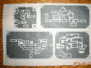 感光基板は過去の失敗の経験から新しい感光基板を使用したことで現像までは問題なくできました。以前はインクジェット式のプリンターを使いましたので、紙が湿って丸まり扱いにくかったのですが、今回はエプソンのLP−120というレザープリンターとコクヨの厚手のトレーシングペーパー(セーT79N)を使いましたので版下は順調に出来ました。