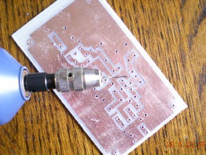 しかしエッチング時間はアバウトで大丈夫だと思っていい加減にやったら失敗、溶けるはずの銅が残ってしまいやり直し、今度はうまくいったので穴開け作業とフラックス塗布まで行きました。エッチングの失敗はエッチング液の温度が30度ぐらいまで下がってしまい反応が遅くなってしまったためと思い、次は大きいバットに高温の湯を入れ湯煎しながらエッチングしました。
