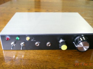 次はケースの穴あけと部品の取り付けです。デザインは過去のものと基本的には同じですケースの大きさ、取り付ける部品の種類や数から同じ配置になってしまいました。作る楽しみだけでなく、実際に交信に使えなければ意味がないので実績を重視した結果です。(2015.04.06)