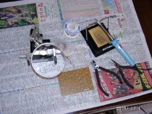 お正月、少し暇が出来たので組立を始めることにしました。老眼なので抵抗のカラーコードを読むのが一苦労、デジタルテスターやアナログテスターで確かめながら半田付けをしていきます。一つ問題が発生、カラーコードに表示されている抵抗値と測定値が極端に違うものひとつあり、確定する自信が無いので別途この抵抗を秋葉原で購入することにしました。また、ダイオードの極性についてもうる覚えであったためこれも後回にし、一応区切りをつけました。意外と手間を食った感じがしましたが、久しぶりの半田付けは楽しかったです。