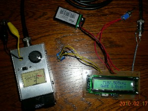 キャリブレーションのキット「CALカウンター」を組んでみました。「クリスタルチェッカー」のキットと異なりこれはプリント基板で部品も少なく基板関係は簡単にできました。同封されていたプラケースに納める前に動作するか、スイッチや電池、BCNコネクターなどを仮に繋いでテストしてみます。 BCNコネクターで「クリスタルチェッカー」と接続、電源を入れるとあっさりと動作、拍子抜けするほどです。 問題はケースにどう納めるかですが、配置例がないので悩みまます、結局写真のようになりました。電池は配線の弾力を利用することにより特に固定はしませんでしたが多少揺すっても電池は動きません。 きちんと計ってやったつもりですが、基板をケースに固定するビスの穴空けに失敗してしまい、ヤスリで穴を広げてやっと止めることができました。 価格も手ごろで液晶も見やすく、よく考えられているキットだと感心しました。 |