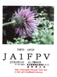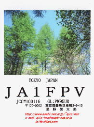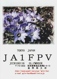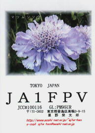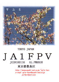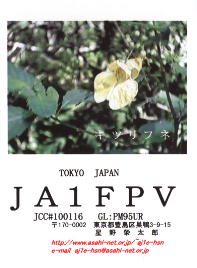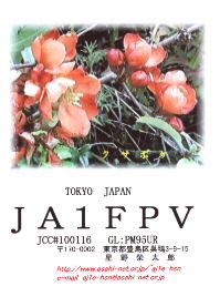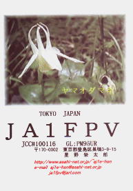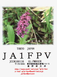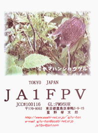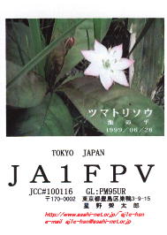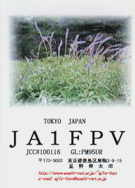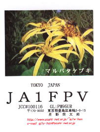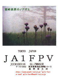 再開局から3年間ぐらいは、ハムログを利用して印刷していました。 月ごとにデザインを変えて、といっても、花の写真などを差し替えるだけですけど。 中には、旧碓井峠の熊野神社を写したもののように一枚しか発行しなかったカードもありました。(JO1ZKV宛てのみ)