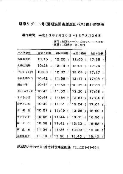 「夏期浅間高原巡回バス(嬬恋リゾート号)運行時刻表」