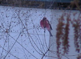 | 2001/12/30 | 着いたときの山荘の温度は、外気温マイナス9度、室内温度プラス1度でした。前回来たとき以来雪は降っていないようでした。 朝起きたら、雪が降っています、明け方あたりから振り出したのでしょうか積雪は2センチ程度です。今日は不安定な天気でした、小雪が降って来たり、突風が吹き荒れたり、そうか思うと突然青空になったりと天候が変わります。 そんな中、ベニマシコの一団が、現れました7メートルほど離れた萩の枝に6羽止まっていました。その中の1羽は特にピンク色が強く、お腹全体が真っ赤でした。 しばらく留まっていましたが、突然藪に飛び込みました、ノスリが真上で旋回していたためのようです。 餌台観察日記 雪のせいでしょうか、まったく鳥が寄ってきません。ガラ類の声さえ聞こえません。 前回は夕方数羽は来たのですが。 | |