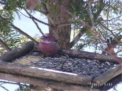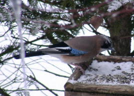 | 2002/02/3 | 気温は高め早朝でマイナス2度程度、暖かい朝です。今日帰るつもりなので、本格的に雪が降らないようにと思っています。 午後3時過ぎに山荘を出ましたが、それまでは雪はたいしたことはありませんでした 。最近の予報は、外れた場合の影響を考慮して悪いほうに偏って出すのでしょうか、「狼少年」になってしまっては、本当に大変なときに信用されないと言う悲劇が起きますね。 餌台観察日記 常連のガラの仲間ばかりで面白くなかったのですが、カケスが餌を取りに来ました。 また、こちらの帰り際に、ベニマシコが一羽登場です。庭の雪の上に出ている草の実を啄ばんでいました。 そして、ウソが4羽登場しました。レンゲツツジの実を啄ばんでいます。その内の1羽はお腹の方まで赤いきれいなウソでした。 | |