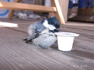 22日は鹿沢ハイランドでスキーです、今回は職場の仲間も来ていてスキー場で待ち合わせです。久しぶりに思い切って第三リフトリフトを使って一番上まで行きましたが、着いた途端に後悔です。雪は豊富でブッシュなど出ていないの良いのですが急勾配なので不整地なのは当然としても、ギャップが深く手に負えません、這々の体でズリ降りてきました。スキー場でお昼を食べた後彼らと別れて小屋へ帰ってきました、若い人の体力にはかないませんから。今回は珍しい野鳥にが小屋にやってきました。一つは、キクイタダキです。2羽で来て生け垣のイチイのところでチョコチョコと飛び回っています、少しもジッとしていないし、イチイの葉に隠れるようにしているので3メールぐらい先にいるのですがはっきり見るのは苦労します、メジロを小さくして体色を濃くした感じで頭の頂上がオレンジ色をしていました。 もう一つは、初めて見る鳥で、ベニヒワです。庭のシラカバの梢付近で実を5,6羽で啄んでいました。大きさはシジュウカラぐらい 体は灰色より白に近くごま塩のような斑点が見えます、胸のあたりが赤みがかっているのもまじっています。何よりも特徴的なのは頭のてっぺんがまるでアカゲラのように真っ赤なことです。何の鳥か分からず、慌てて図鑑を見て同定しました。 また、鳥の事故です。23日、今度は写真のヒガラ君がベランダのガラス戸に激突しました。かなり酷く衝突したようでベランダの床で仰向けになって足を痙攣させてました。一応起こしてやって様子を見てましたが、暫くして気が付いたようですが羽を痛めたのか飛べず、ピョンピョンと跳ねながら庭の隅の方に行ってしまいました。夕方にはまだ庭にいました、この夜雪が降りましたが無事に飛び立てただろうか心配です。 | |