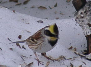 | 2003/2/8-10 | 9日には例によって鹿沢で2時間だけ滑ってきましたが、雪が重くて疲れました。 餌台には、何時ものガラの仲間やゴジュウカラ、アトリがやってきます。近頃、シメが良く現れます、アトリや写真のミヤマホウジロと一緒になって餌台の下でウロウロしています。 また、大型のアカゲラやカケスも餌台のヒマワリの種をねらってきますが、餌台が半分壊れかかっているので重さで倒壊しないか心配です。 それから、散歩の帰りに小屋の近くで野兎を見かけました、良く足跡や糞は見かけるのですが本体を見たのは初めてです。灰色と褐色の混じった色をしていて、思っていたより大型でたくましい姿をしていましたが、一瞬の間に駆け去ってしまいました。 | |