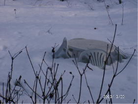 | 2003/3/21-23 | 別荘地に着くまでは、道路に雪は無くほとんど乾いています。別荘地内の道路は前回よりずっと雪は少ないですが、それでも所によっては厚く固まっていますので油断はできません。 小屋の庭の積雪も大分低くなってなってきました。ガーデンテーブルや椅子の上の部分が出てきましたので50センチぐらいでしょうか。 今回は別荘地内を散歩している折りに良くヤマドリを見かけました、今年は数が多いのでしょうか。 日曜日に最近温泉を掘り当てたと云われている別荘地内にあるホテル・グリーンプラザのお風呂に入ってきました。午後2時頃ですと貸し切り状態で、露天風呂にも悠々と入浴できて気分は最高です。このお風呂のある建物の直ぐ傍に大きな櫓があり、これが温泉掘り当てた井戸でしょう。何かパイプを抜く作業をしていましたが、一瞬お湯?があふれ出るの見ることが出来ました。 | |