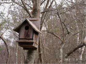 | 2003/11/8 | 今日の朝は、外気温は6度ぐらいあって比較的暖かです。庭の二つの巣箱をはずし、内側を掃除して綺麗にします。一つは今年は使われませんでしたが、もう一つのほうは2回も使われました。来シーズンもシジュウカラの巣立ちが見たいものです。 日中はとても暖かだったので、昼食は外のデッキでとりました、青い空に雲が流れてビールが旨い。 | |