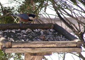 | 2003/12/23 | 餌台にガラの仲間のヤマガラ、コガラ、シジュウカラ、ヒガラのほかゴジュウカラやエナガなどがやってきます。エナガはさすがにヒマワリの種は餌にしないようですが。このほか、ずんぐりとしていて顔が黄色いミヤマホオジロやアカゲラ、ツグミも餌台の近くに来ていました。 また裏の大きなモミの木には珍しくキクイタダキが現れました。 | |