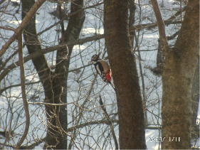 5日の夜は良く晴れて月が明るく輝いていたのですが、翌朝起きてみると一面の銀世界です。5センチ以上積もっていました。 スキーに行く予定でしたが、大したことはありませんが雪も降っていましたし、何よりも風が強いので止めました。この日は一日中天気が荒れ模様で、青空になって日差しが強いなと思っていると突風が吹いたり、急に霰が落ちてきたりして不安定な天候でした。 こんな天気のせいか、餌台に来る鳥も少な目です。ただ、「エナガ」が5,6羽で楓の枝に頻りにやってきます、よく見ているとどうも幹や枝から染み出ている樹液を嘗めているようです。 7日は、お天気は良いのですが風が強く、この日もスキーには行きませんでした。5日の夜、6日、7日とホテルの温泉へ通いました、まるで湯治に来ているみたいです。 こちらへ来ている間、気温は低めで朝でマイナス9度、日中でもマイナス4度で暖かいのに慣れた体がには効きました。 | |