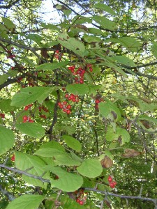 数年前の浅間山の小規模噴火以来、野鳥の数が減ったなと思っていたのですが、噴火騒ぎも収まりこのところ野鳥の数が増えたような気がします。ガラなどの混群のほか、最近はイカルの集団も飛来します。小屋の餌台に10羽も一度に来て押し合いへしあいしてヒマワリの種を啄ばんでいきます。今の時期は木々の葉が茂っているので姿を良く確認できませんが、冬鳥の季節が楽しみです。庭では、レンゲショウマやハナイカリが可憐な花を咲かせています、ススキの穂も出ていよいよ秋です、僅かに漆も色づき始めました。 今回の私の庭仕事の担当は、今年植えて収穫のあったブルーベリーの剪定と一部の雑木の伐採です、日当たりの改善のためやむ得ず少し切りました。 | |