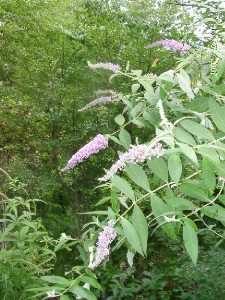 庭ではブッドレアが咲き始めました、この木は葉は真冬の厳寒期でも緑色の葉を着けているので目立ちます。