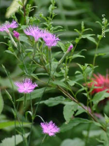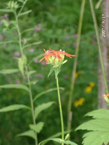 庭では、ベルガモットが咲きそろいました、鮮やかな赤で木々の緑を背景に際立っています、春に少し間引いてやったのが成功したようです。ギボオウシも今年はよく咲いています。そのほかヤマホタルブクロ、コオニユリ、クガイソウも咲いており庭は賑やかです。