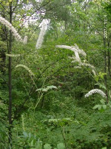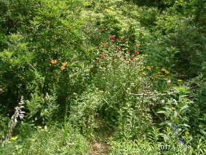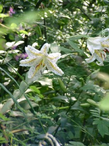 今庭では、コオニユリ、クガイソウ、ヤマホタルブクロ、ギボウシ、ウツボグサ等の野草が咲き始めました。花木ではノリウツギ、ヤマアジサイが白い花を着けています。園芸品種では京鹿の子、ベルガモット、クレマチス、バラ(ニュードーン)が花を着けています。いずれも後10日もすれば見ごろになるかなと思っています。