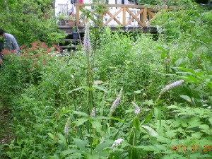 庭では深紅のベルガモットが良く咲いています、オオバノギボウシも今花盛り、クガイソウ、カワラナデシコやオカトラノオも咲いていて庭は賑やかです。今年はヤマユリやコオニユリ、ユウスゲなどが咲いていないのが今ひとつ寂しいですが。野鳥はガラの仲間のほかは、最近よくカワラヒワが良く餌台に来たり、水盤で水浴びをしています。またビンズイもよく見かけます。 |