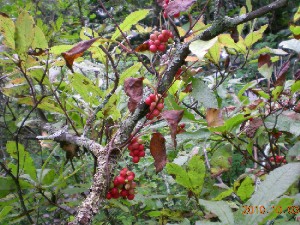 金曜日の夜こちらに来て、月曜日の朝に帰京しました。先週より寒くなく過ごしやすかったですが紅葉は徐々に進んできています。庭の山桜のは赤くなって来ましたし、桂も上の方の枝の葉が黄色くなってきました。白樺の葉もずいぶん落ちました、野草もそろそろ花は最終段階です、今も元気よく咲いているのはゴマナなどですがもうすぐ霜が降りるようになれば、、リンドウを最後に花も終わりになります。 餌台にガラの仲間達が沢山来るようになりました、付近の電線にとまって順番待ちをしています。直ぐにヒマワリの種が無くなってしまい補充がいそがしいです。 先週不足していたゴミシの実を庭で収穫しました、先週は未熟でしたが今回は熟していて大丈夫です。何とか必要量を確保して追加して漬けました。 |
