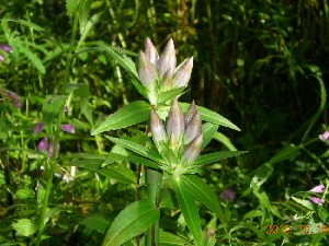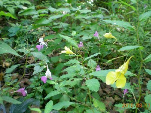 園芸品種のツリフネソウの側で野草のキツリフネも咲きました。キツリフネは林の側の道路際によく見かける野草です。レンゲツツジに絡んでいるゴミシの実が色づいてきました。真っ赤になるのは10日後ぐらいでしょうか、ことしは実の着きが良いようです。 これから咲くのはリンドウですが、まだ少し間があるようです。 |