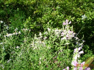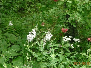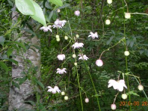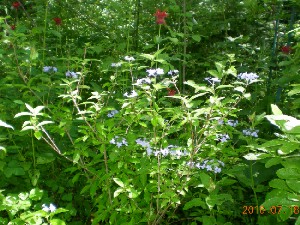 8月の上旬の庭ではギボウシや萩の花が目立っています、また、この春に植えたフシグロセンノウも咲いています。今年はこの時期に咲いていたヤマユリやコオニユリが無く残念です。多分モグラに食べられたのではないかと疑っています。中旬以降はフロックスやブットレアが咲いています。また今年はうれしいことにブルーべーリーがたくさん実を着けましたので何回か収穫出来ました、植えてから5年目でやっとまともに実がなりました。 餌台に来る野鳥はガラの仲間が多いですが、近頃はカワラヒワや斑鳩が良く来ます。リスも時折姿を見せます。 |