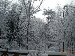 木曜日の夕方こちらにきました。さすが寒いですがいつものことなので仕方がないです。直ぐに薪ストーブに火を入れます、石油ヒーターも同時に動かし家を暖めます、薪ストーブにも慣れました。金曜日は風もなく良い天気なので一年ぶりに鹿沢にスキーにいきました、ゲレンデは空いていてほぼ貸し切り状態です。ゲレンデは相変わらず固く滑り易いのですが、久しぶりのスキーはスピードについていけず少し怖かったです。スキーは2時間、これが体力の限界です。 土曜日は朝から小雪が断続的に降っていましたが、夜半から本降りになり日曜日の朝までに20センチ以上降りました。この日は午前中には帰京する予定ですが、これでは車を動かせません、管理事務所に連絡して道路の除雪をしてもらいました。 小屋の庭はモノトーンの世界です、土曜日の雪ですっかり雪景色になりました。雪のせいで餌が取れないのでしょうか野鳥が餌台に集まってきています。小屋に来た野鳥は、シジュウカラ、コガラ、ヒガラ、ゴジュウカラ、エナガ、コゲラ、ミヤマホウジロ、メジロ、シメ、キクイタダキ、アカゲラ、アトリ、ツグミと賑やかでした。リスも餌台に乗っていました。 |