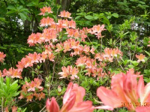 土曜日の午後、吾妻線の鈍行でこちらにきました。かみさんは金曜日の夜、先に来ていたのですが天気はこちらでも良かったようです。日曜日も日中は一応晴れ、夜9時ぐらいからは雷雨となりましたが一時間ぐらいで上がりました、明日はゴルフなので一安心。 月曜日は快晴、絶好のゴルフ日びより楽しいゴルフとなりました、朝の一番スタートだったのでお昼には終了、のんびりと過ごせました。 火曜日は朝早く帰京、テニスクラブに寄って昼までテニス、疲れました。 小屋の庭では例年より遅くレンゲツツジが満開を迎えています、今年はサラサドウダンが花をいっぱい着けています、植えてから15年以上たちますが気が付いて見てみるとかなり大きくなっています。野草ではスズランが咲き園芸品種ではルピナス、シャクヤクなどが蕾を膨らませています。ただ今年はズミが殆ど花を着けていません。これは小屋の庭だけではなく付近のも同様で何か違和感があります。 毎年春は来ますが、自然状態では同じ春の景色はありませんね。季節的には5月中旬から7月のはじめにかけてが自然の躍動感があり一番わくわくします。 |