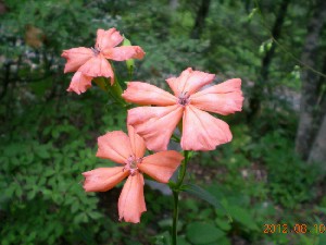 8月も中旬を過ぎると秋の気配が濃厚になってきます、昼間は28度ぐらいあってじりじりと日光を浴びると東京と変わらない暑さを感じますが、日陰に入るとひんやりと涼しいですし夕方から朝にかけては20度以下まで下がりますので大変過ごしやすいです。8月ごろ咲く花は期間が長いので春先のように日一日と庭の景色かわると言うわけではありませんし、特に庭に手を入れることもありません放置状態です。 昨年から玄関の階段に沿ってナンバンハコベが咲いています、花の形や実が面白いので抜かずに放置しています。 昨年購入したソバナが少し大きくなってフシグロセンノウと一緒に咲いています、来年も咲いて定着すると良いのですが。
