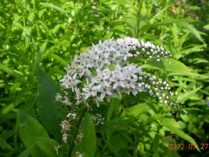 近頃は他の野草に浸食されハクサンフウロが押され気味です。ノリウツギも咲き始めました、これが咲くと夏が来たという実感がわきます。