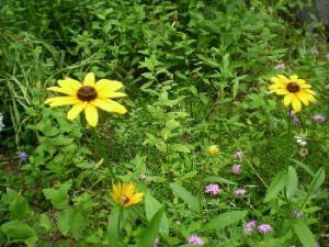 庭ではヤマユリが咲き出しました、近年は球根を伏せた翌年は咲きますがその翌年以降は全く芽が出なかったり、虫にやられて花が咲かなかったりと安定しません。ヤマユリの球根自体、入手が難しく苗を植えることも多くなってきました。ルドベキヤの濃い黄色の花が目立っています、この花は咲くと何時までも咲いて楽しませてくれます。 ![]()