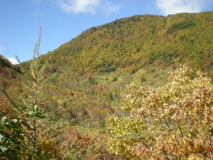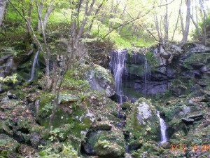 今回はテニス仲間のご夫婦と紅葉の桟敷山へ登る予定でした。天気予報は芳しくなく心配しておりましたが、私どもが先行して17日の夜、こちらに来て様子を見ました。どうも天気が不安です紅葉を綺麗に見るためには日差しが是非とも必要で、曇っていたり雨ではまったくさえない色にしか見えません。そこでご夫婦に連絡をとり18日(木)に予定した登山を中止することになりました、楽しみにしていたので残念でした。当日の天気は予想どおり雨にはならないものの曇りで、山の中腹以上には雲がかかっています。これでは山に登ってもガスで見晴らしもないのではないかと思われます、中止して正解だったようです。 悔しいので20日(土)が良く晴れたので、桟敷山林道を走って外側から紅葉を見てきました。紅葉が遅れた事もあるのでしょうかまずまずの綺麗さです。 帰路、鹿沢温泉近くにある「たまだれの滝」を見てきました。県道脇の駐車場から少し行くとしっかりとした吊り橋がありそれを渡って左の方へ行くと木道があります、その突き当たりにその滝はありました。駐車場から10分とかからない距離です、正直いって大した滝ではありませんが夏場に来れば涼しいことは間違いありません。 ![]()