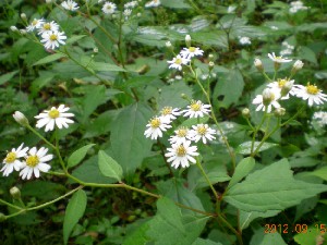 今庭では、サラシナショウマが目立ちます、シロヤマギク、ゴマナなど白い花が多くなっています。