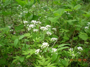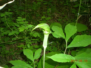 今回は木曜日の夜にこちらに来て月曜日の朝、帰京するという日程です。20日ぶりになりますが、木々の緑が濃くなったという印象があります。前回までは淡い緑の新緑で葉もそれ程は茂っておらず庭も明るい感じでしたが、今は葉が茂って少し暗くなりました。庭の端からは小屋の上部が見える程度で庭全体が林の中になってしまいました。 カンボクやヤマボウシも白い花をつけ始めています。 野草ではイブキトラノオやマムシグサが今年も出てきました。 ![]()