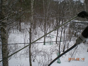 ついでに行くのには便利です。この日は前回同様お天気にも恵まれ幸いでした。夕方、小屋に着きましたが気温は高めで1度ぐらいです。 翌17日の金曜日はスキーをするつもりでしたが、午前中は晴れているももの強風で周囲の山の山頂付近は黒い雲に覆われ荒れている様子、ゴルフの疲れもありスキーは中止しました。午後からは雨が降り出し、夜に入り気温が下がってくると雪に変わりました。夜半には雪は上がり朝起きてみると約2センチ程度積もっていました。 お天気はしだいに良くなり気温も高く春スキーの感じになってきましたが、腰が重くついにスキーはしませんでした。ホテルの温泉に入ってのんびりしていました。 日曜日の早朝はマイナス9度と例年並みになりました。この日午後早く帰京しました。途中、高速で事故渋滞に少しつかまりましたがなんとか短時間で抜けることができました。 スキーに行かなかった代わりに無線を少しやりました、無線の機械が置いてある2階の窓から庭がよく見えます、野鳥などがこの窓の前の白樺の木にとまり目が合ったりします。 この時期は木々の葉が落ちているので野鳥などの姿がよく見えます、何時も来るリス、ガラの仲間や冬にくるアトリなどのほかツグミ、コゲラ、アカゲラ、ミヤマホウジロ、ウソ、シメ、マヒワがやってきます。 | |