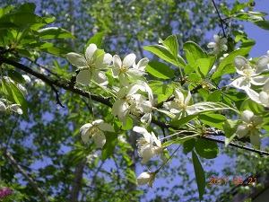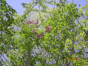 よんどころない用事のため金曜日の夜こちらに来ました。帰京は月曜日の朝、まる二日の滞在となります。村にある「コメリ」で充電式の草刈り機を購入しました。庭の一部に熊笹が多い場所があり植木ばさみで刈るのは大変だとかみさんが云うので買いました。昨年秋にご近所さんから充電式の草刈り機をお借りして、試してみたのですが何とか使えそうな感じなので決断しました。 今庭では、青紫色のライラックが咲いています、かなり高い木なので高い場所で咲いているので葉の陰になって良く見えないのですが。 ズミの白い花も咲き始めています、別荘地内の日当たり良いところでは満開になっているズミも見受けられます。 ![]()