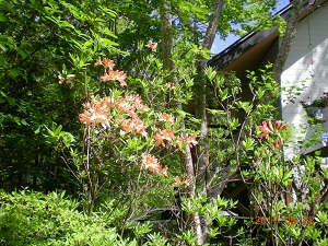 今回も金曜日にこちらに来て月曜日の朝帰京する日程できました。金曜日はお天気が悪かったですが土曜日、日曜日とお天気が良く気持ちよく過ごせました。庭ではレンゲツツジの花が咲き始めましたが昨年に比べると花の着きが悪く株によっては殆ど花がついていないものもあります。ご近所の庭のレンゲツツジも同じような傾向です、今年ははずれの年となりました。 サラサドウダンは今年も良く花を咲かせています、屋根からの落雪を受け一部樹体を痛めたので心配していましたが何とか助かりました。
