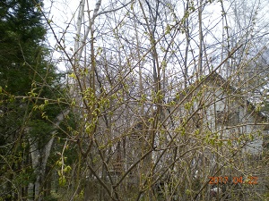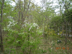 今年は雪が多くレンギョウが雪に押しつぶされるなどしたのでちゃんと花が咲くか心配していましたが、例年どおりに花をたくさん着けてくれました。このレンギョウは小屋を建てたときに小さな苗を友人と植えたもので20年ぐらいになります。レンギョウはシュートが伸びたり枝が暴れたりするので花後の剪定が重要です。ユキヤナギは木の下の少し暗いところあったので咲が良くなかったですが、少し木々を整理して明るくしたところ咲が少し良くなりました。 ![]()