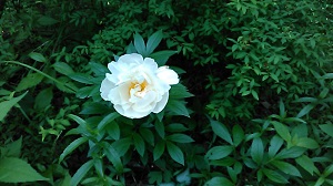 今回は金曜日の夜に来て月曜日の朝に帰京するという短い滞在です。庭ではニシキウツギの花が赤く咲いています、このニシキウツギは萩などと同じで庭のあちこちで発生します。花の色が白から段々と濃いめの赤へと変色していくのが面白いです。 白い花の芍薬が咲きました。以前はピンクの芍薬も咲いたのですが、こちらの株は絶えたようです。比較的大輪の花ですが周りの植物に押されたり日陰になったりでやっと咲くことができたという感じです。