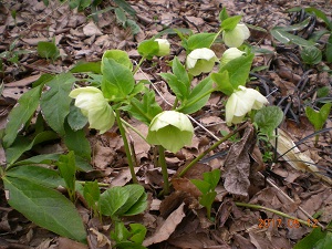 イカリソウが今年も咲きました。昨年より株が大きくなった気がします。クリスマスローズが所々で咲いています。これは苗から植えたものではなく、東京の自宅から暑さ除けのため咲き終わった鉢をこちらに持ってきた際、其の鉢から落ちた種が芽を出して成長した所謂「実生」です。思わぬ所から生えたりしていてここはクリスマスローズに適している場所なのですね。 | |
