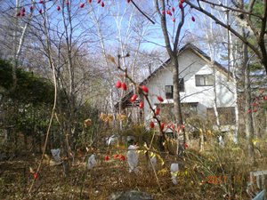 | 2017/11/9-12 | 気温も10日の早朝はマイナス5度程度までおちました。今回は東京から持ってきた鉢物を持ち帰ることと野兎対策を行うことが目的です。 今、庭で目立つのは、マユミ、ツリバナマユミ、メギの赤い実です、特にメギの艶やかな赤は目立ちます。 前回までは元気だったクレマチスの葉は霜にやられて萎れてしまいました、このクレマチスは野兎の食害を受けないようコモで巻いて対策をとりました。 | |