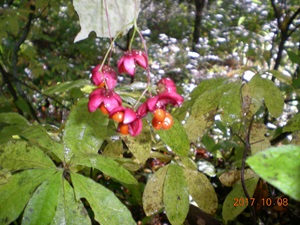 | 2017/10/6-10 | 庭の桂はかなり葉を落としているなど、秋がいよいよ本格化しそうです。紅葉は山桜が中心ですが、10日もすればヤマボウシやリョウブ、モミジも紅葉するでしょう。ツリバナマユミが今年は赤い実を沢山着けています。 | |