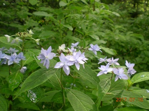 | 2017/7/14-18 | 庭に何種類かのヤマアジサイをうえてありますがこれは八重の青い花のヤマアジサイです。 一度見たいと思っていたのですが、こんな形での対面は最悪です。 売店の地元産の手作り品などは気が利いたものもあり何点かお土産ととして買いました。 嬬恋村方面からカーナビを頼りに行ったのですが「八ッ場ダム」工事に伴う道路の付け替えが行われており少し戸惑いましたが。 | |