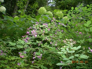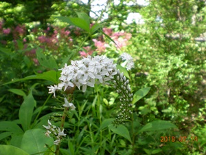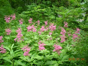 | 2018/7/1-5 | 小屋の庭は緑がますます濃くなって少し暗い感じになってきています。 キョウカノコが濃いピンクの花を着けています。大変丈夫な植物で病気や虫にもやられません、株も大きくなるので数年前に半分株分けをして知り合いの方に譲りましたがその時の大きさに戻ってしまいました。 ウツボグサ(夏枯草)も庭のあちこちで群れになって咲いています。 自生する野草はある時期までは株をランナーや零れ種で増えていきますが、ある年突然に数を減らしたり消えたりします。自然にまかせると毎年同じように花を咲かせません。木も同じで毎年違う咲き方をします。 シモツケがピンク色の花を咲かせています。今年はシモツケソウが咲かないのでさみしいですが。 小屋の庭は6月以降になると木々が茂って半日蔭の所が多く植えた木の成長は遅いので少し心配です。 |