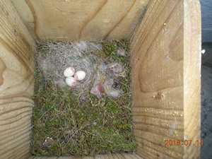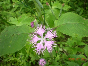 | 2018/7/24-29 | 次男一家がこの日の夕方到着し食事したあと雨が降って荒れたので心配しましたが朝には止んで天候も回復しやれやれです。 朝起きて庭の状況を確認すると少し大きめの木の枝や千切れた葉が多く落ちていて風雨がかなり強かったことが分かりました。花木の一部が横倒しになっていたり、アナベルなどの花も折れていたりと被害も散見されました。 私たちはこの日の正午ごろ小屋を立ちましたが、国道146号線の峰の茶屋まで行くと警察車両が「軽井沢方面は通行止め」とアナウンスしています、止むを得ず白糸の滝を通る有料道路経由して軽井沢まで下りました。旧18号にするかバイパスにするか有料道路にするか迷いましたが急ぐ訳でもないので交通量の少ない旧18号で帰ることにしました。 交通量が少ないのは良いのですが、急なカーブが連続し路面に大きな木の枝や木葉が落ちていて気が抜けませんがなんとか無事帰京できました。 小屋の庭では増えたカワラナデシコがピンク色の花を咲かせています、よく見ると花弁が複雑な形をしています。 幸い白樺など大きな木々はざっと見たところ大きな被害は無いようです。 一週間前に確認した巣箱の卵ですが、その後親鳥が卵を温めた様子はありません何かの事情で放置したようです、残念です。 | |