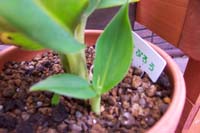 5月の終わりからぐっと気温が上がり成長が促されたせいか、どの株も少し元気を回復してきたように感じます。 毛ばたき状だった葉に葉柄が見られるようになり、 一見しただけでは異常を認められないくらいきれいな新葉もでてきています。(大きさはやはり以前より小さめ) 一時期に比べ、葉に現れていた薄墨色のバーコードも見えづらくなったような・・・? 気温と日照の条件が良くなれば、それなりに成長を続けてくれるような気がします。 4月の時点では、このまま症状が進行して枯れてしまうのかと心配だったのですが、 とりあえず生き続けてくれそうです。 しかーし、2号の子株がBBTV(バナナ・バンチートップウィルス)感染を示す特徴的な状態で育ち始めました。 幼苗のころのほうが、はっきりした症状が出やすいそうです。 萎縮した葉が認められ、葉の出現順と大きさが比例していません。 葉脈が肥厚してザラザラした手触りの葉があります。 班線状の黒班は認められません。 ◆消毒 月の半ば、黒いカビ病の拡大を押さえるため薬剤消毒しました。 バナナを育てて2年半で初めての消毒です。 やっぱりウィルス感染で株が弱っているのかな? 家にある「トップジンM」や「サプロール」などの中から、悩みに悩んだ結果「ジマンダイセン」を選びました。 野菜や果物の黒点病・黒星病。炭疽病・灰色カビ病その他に効く、一般的な殺菌剤です。 結局どれを使っても同じかな? 展着剤を加えて水和剤を作り、スプレーを使って葉の裏表にまんべんなく散布。 でも天気予報に裏切られ、夜中には雨が降ってしまいました。あらら その後私のバナナの葉を顕微鏡で覗いて下さったヘモドムルさんから結果を教えていただきました。 これなら「ジマンダイセン」で簡単にやっつけられそうです。 現にその後、症状の拡大は認められません。 |